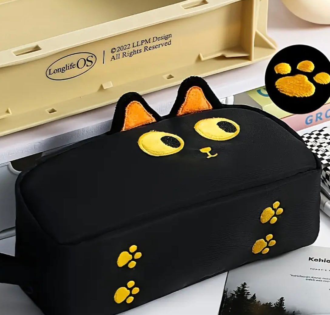 Tutto il fascino di un gatto… sulle tue penne! Astuccio con occhi, zampe e orecchie sporgenti per un back to school super morbido.