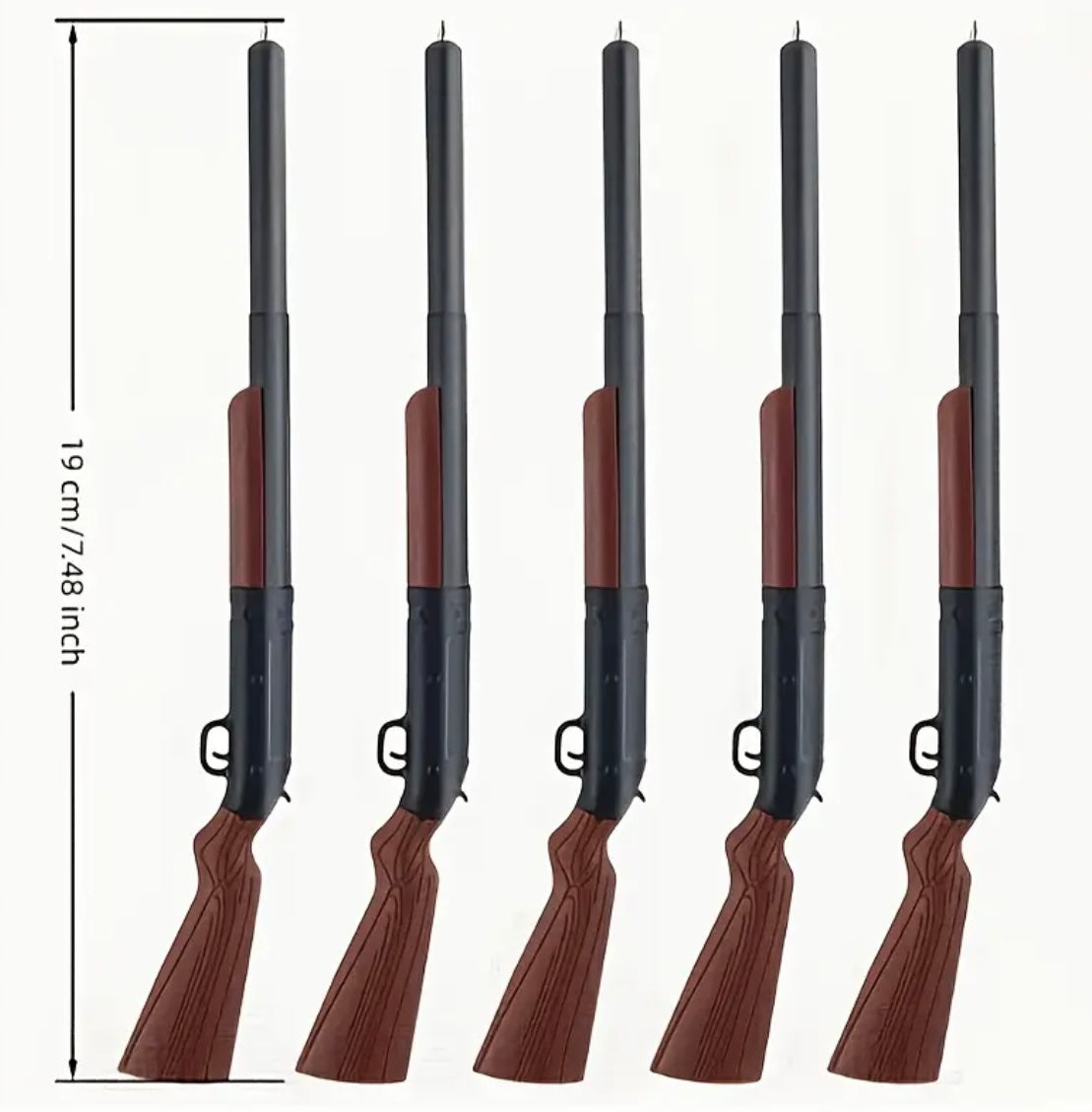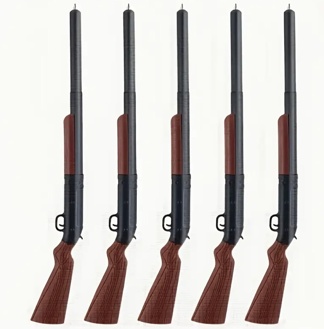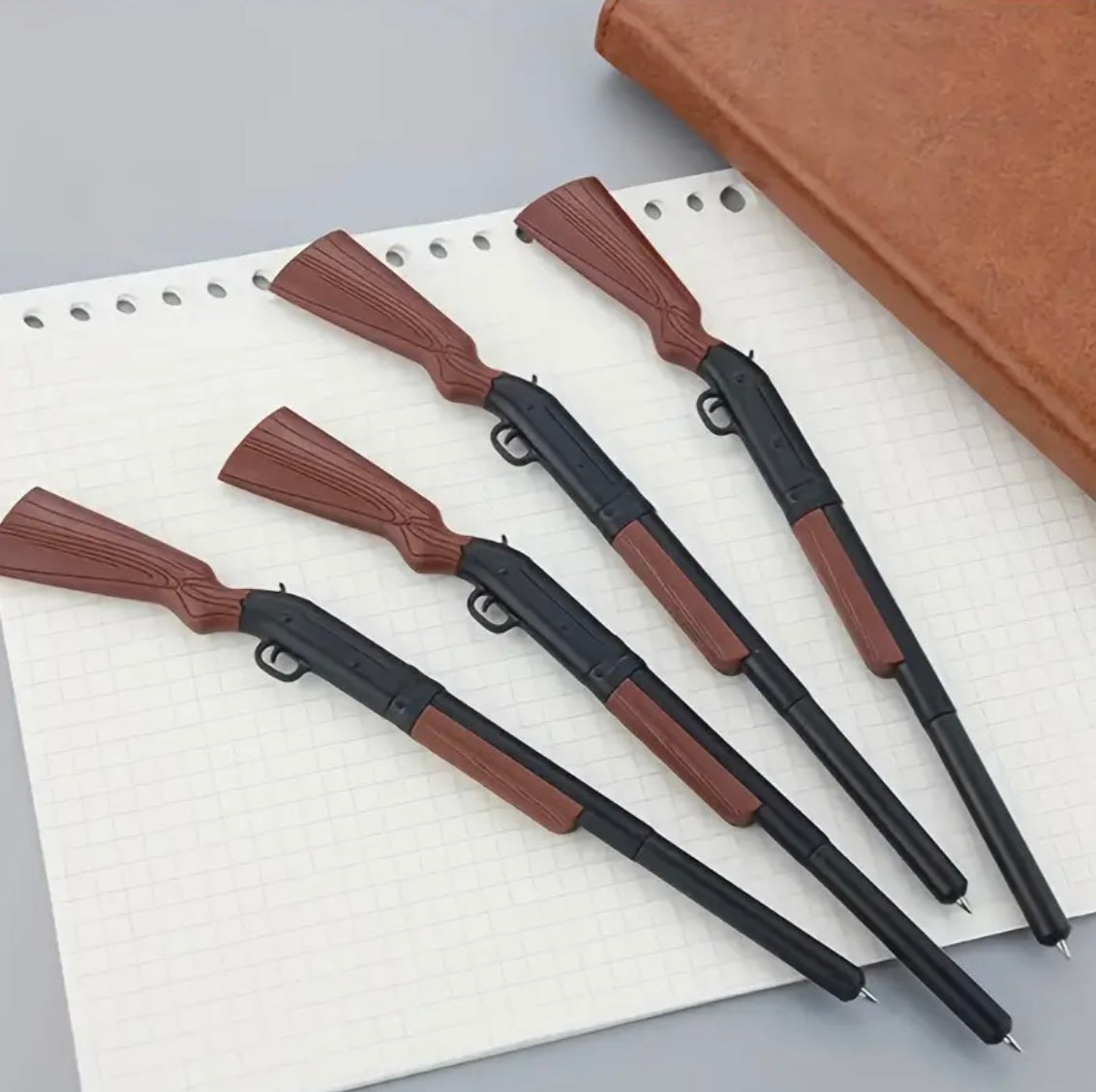 Penne a forma di fucile — solo per scrivere! Meccanismo a scorrimento che fa comparire la punta: divertenti, sceniche e sicure come accessori da scrivania.
